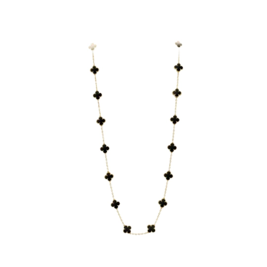 Vintage Alhambra long necklace, 20 motifs, 18K yellow gold, onyx.