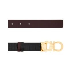 Sottile per un tocco di femminilità extra, reversibile per un utilizzo che supera i confini del quotidiano. Cintura in vitello liscio, con struttura reversibile, lunghezza regolabile e design bicolore. L’iconica fibbia Gancini in finitura dorata viene proposta con profilo squadratao per una nota grafica e più attuale. La lunghezza regolabile consente una vestibilità e uno stile personalizzati. Ti invitiamo a visualizzare la nostra guida alle taglie per ulteriori informazioni.