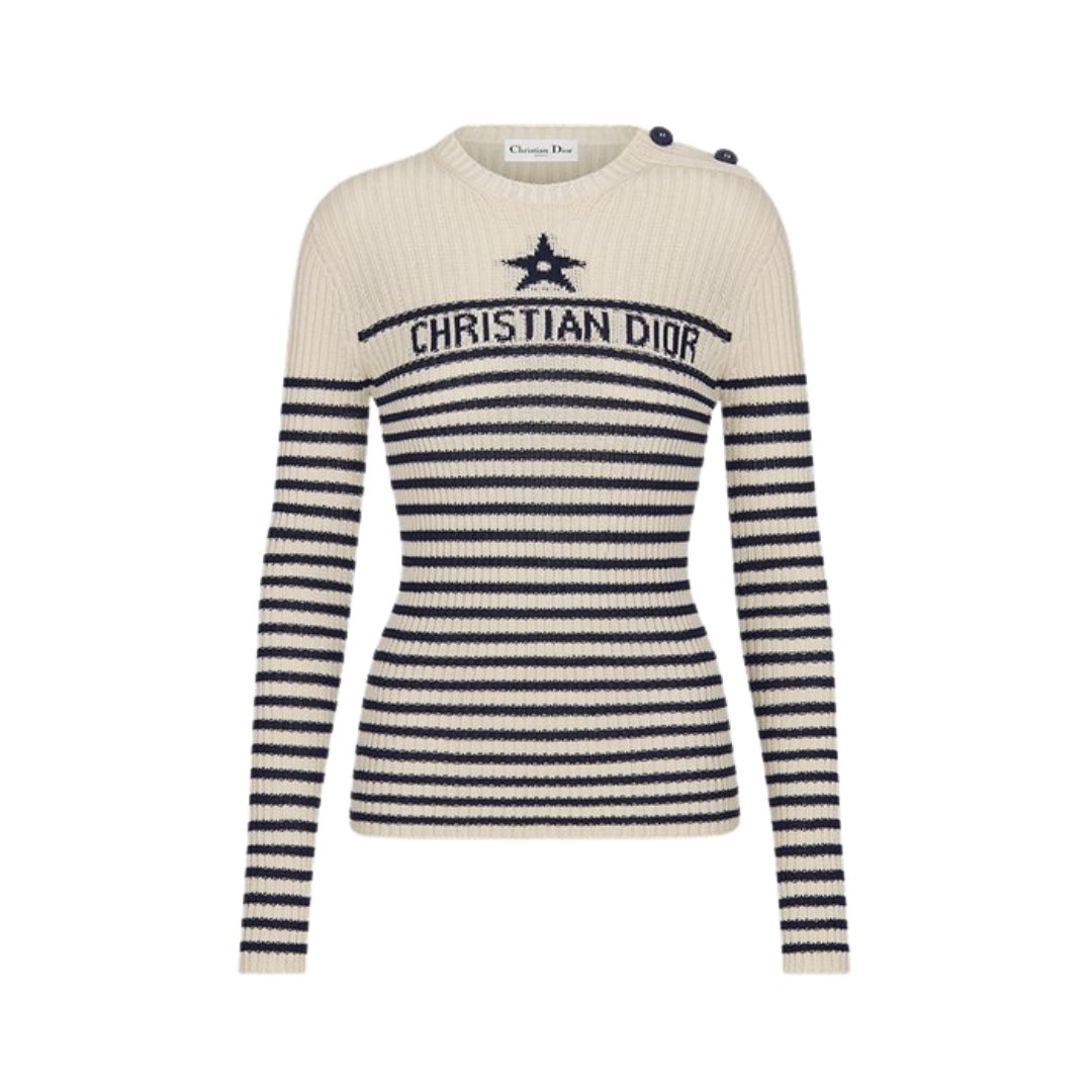 Maglione in cotone ecru/blu navy