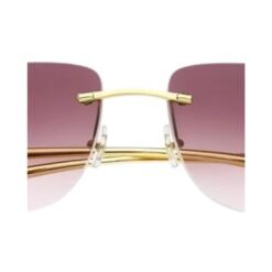Occhiali da sole in metallo con finitura oro lucido, forma rettangolare-ovale, lenti bordeaux sfumate, grado di protezione 2, aste firmate Cartier. Dimensioni delle lenti 73 mm, del ponte 18 mm, delle aste 110 mm.