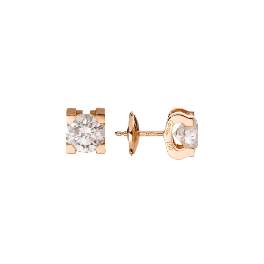 C de Cartier earrings, 18K rose gold (750/1000), each set with a brilliant-cut diamond available in 0.18 to 0.29 carats and 0.50 to 0.69 carats.Please note that the carat weight, number of stones and product dimensions will vary based on the size of the creation you order.?